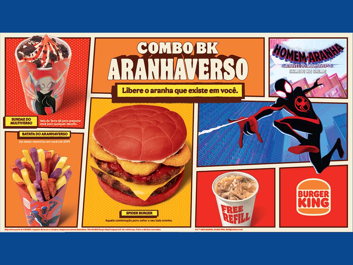 “Estamos muito animados em trazer essa parceria com a Sony Pictures e com o filme do Homem Aranha™: através do Aranhaverso. O Combo BK Aranhaverso traz uma experiência única para nossos consumidores, com produtos exclusivos e brinquedos divertidos para as crianças e adultos. É mais um convite à toda família para aproveitar o sabor e a imersão no Aranhaverso”, conta Juliana Cury, vice-presidente de marketing e vendas da ZAMP®, máster franqueada Burger King® e POPEYES® no Brasil.