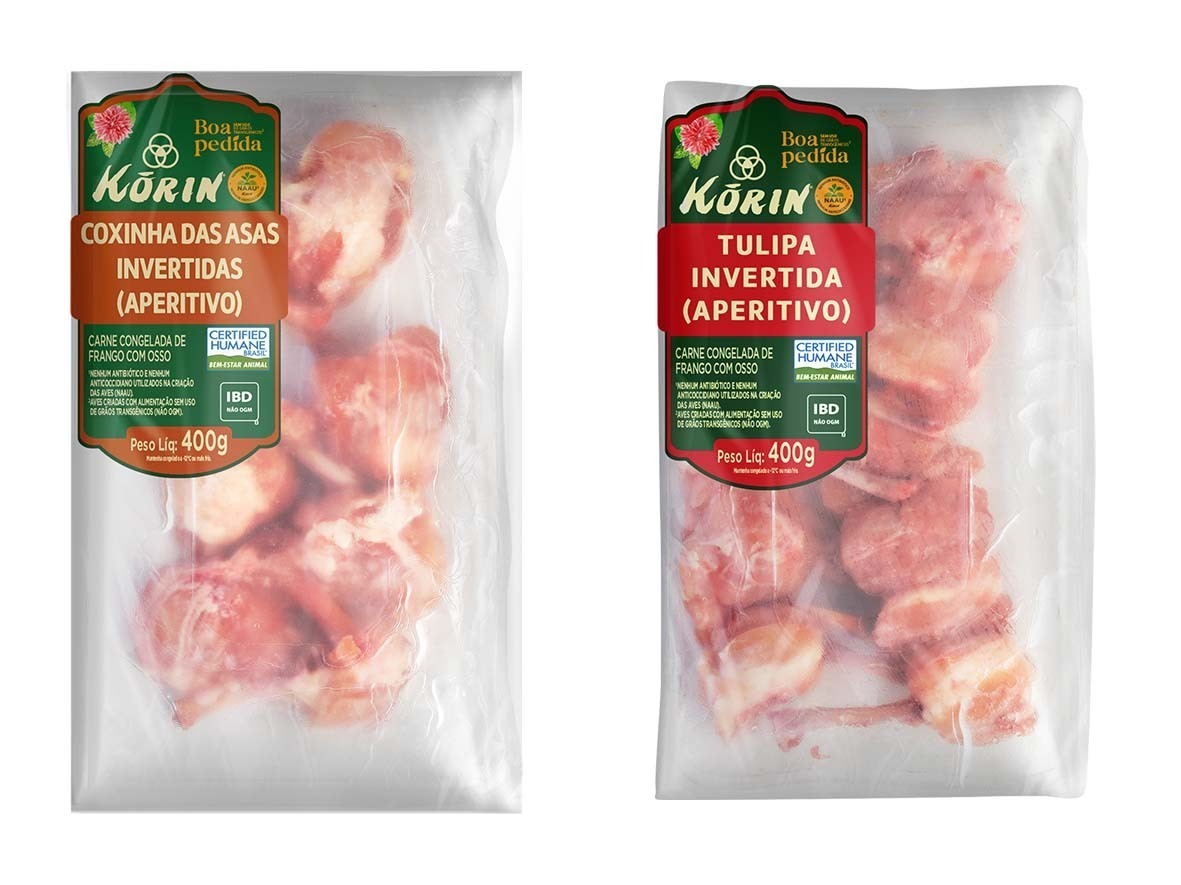 A Korin tem novidades na linha de frangos das coleções Boa Pedida e Orgânicos. Agora tmabém é possível encontrar cortes como coxinha das asas invertida (aperitivo), tulipa invertida (aperitivo), Paillard de Filé de Peito, e duas opções com tecnologia IQF para a linha Boa Pedida e orgânico.