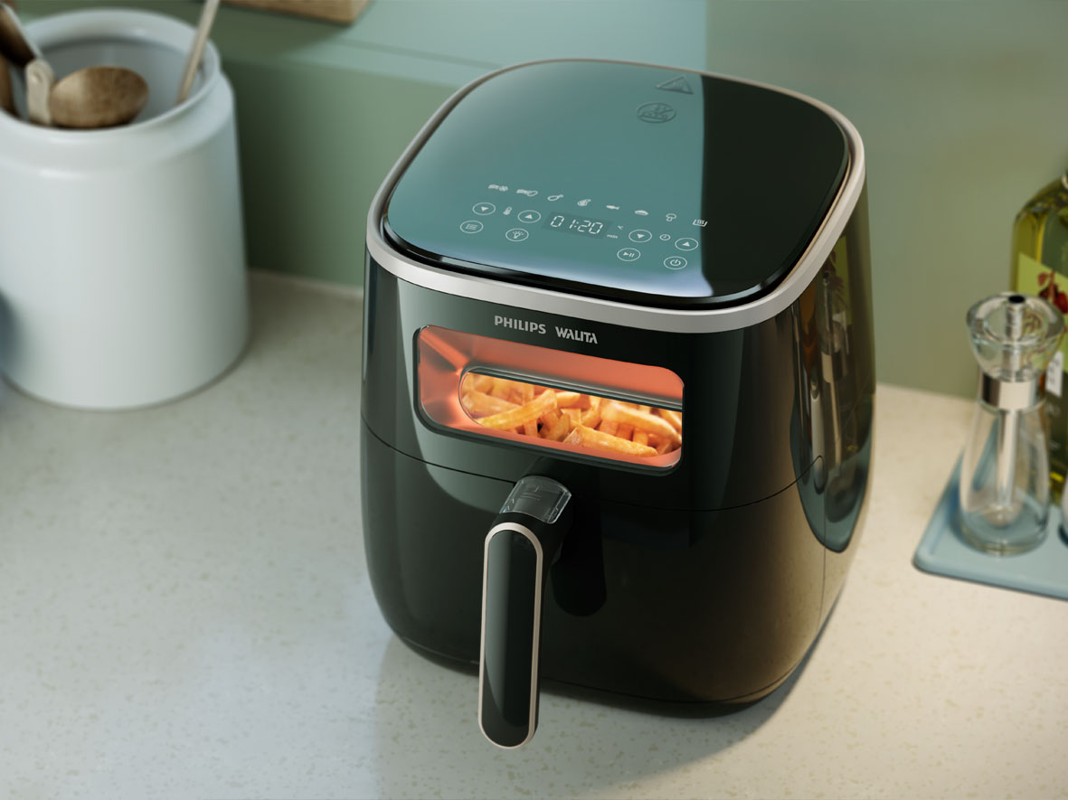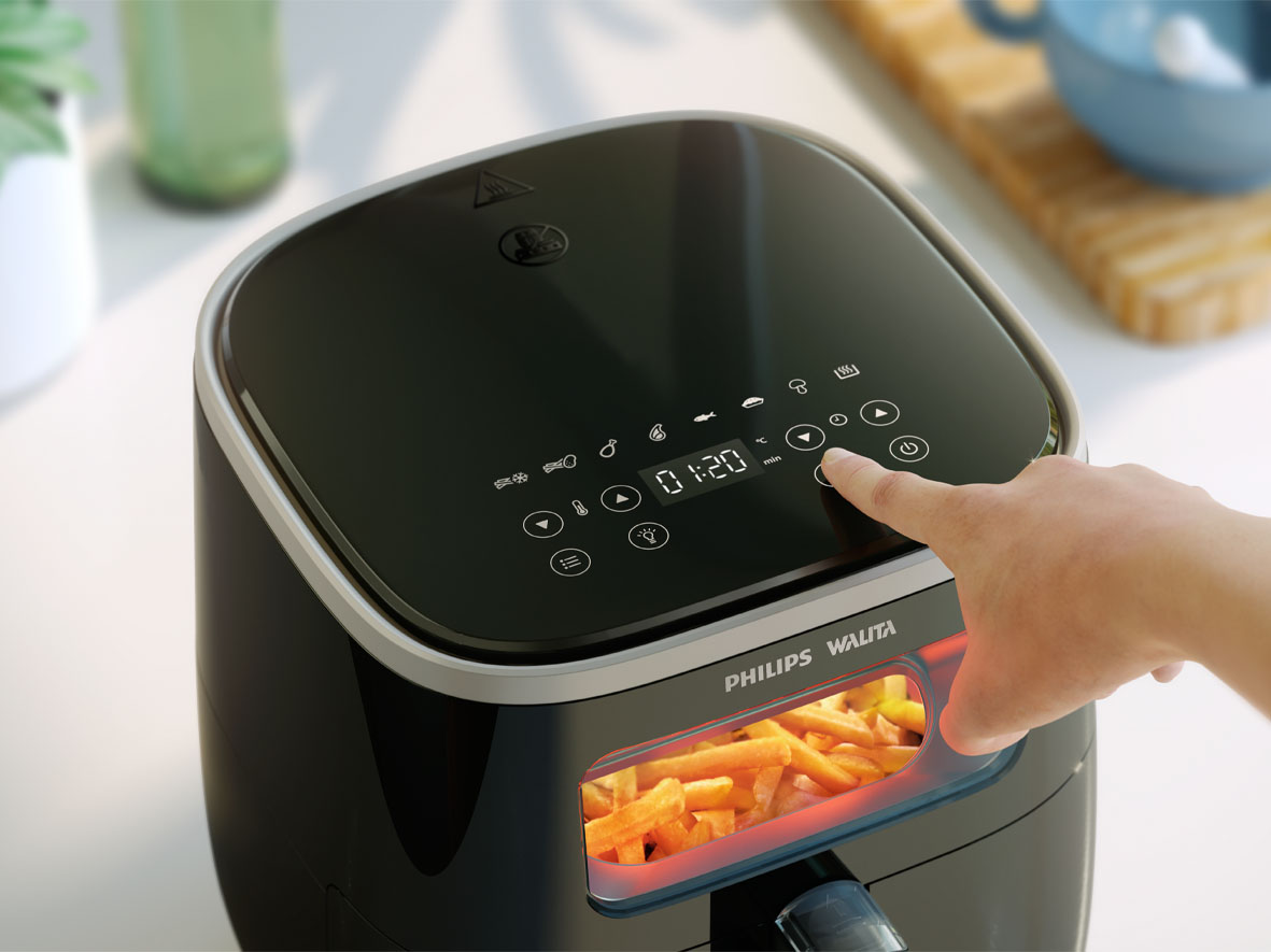 Airfryer Série 3000 XL com Visor se destaca pela presença de uma janela transparente