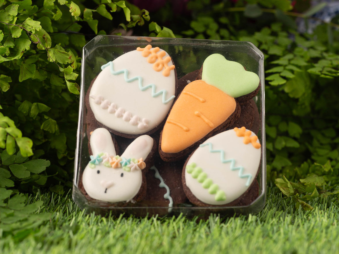 – Biscoito de Páscoa ao leite 100g: biscoitos sabor baunilha com desenho de coelho e uma camada de chocolate ao leite. Preço exclusivo Cacau Lovers: R$ 16,99.