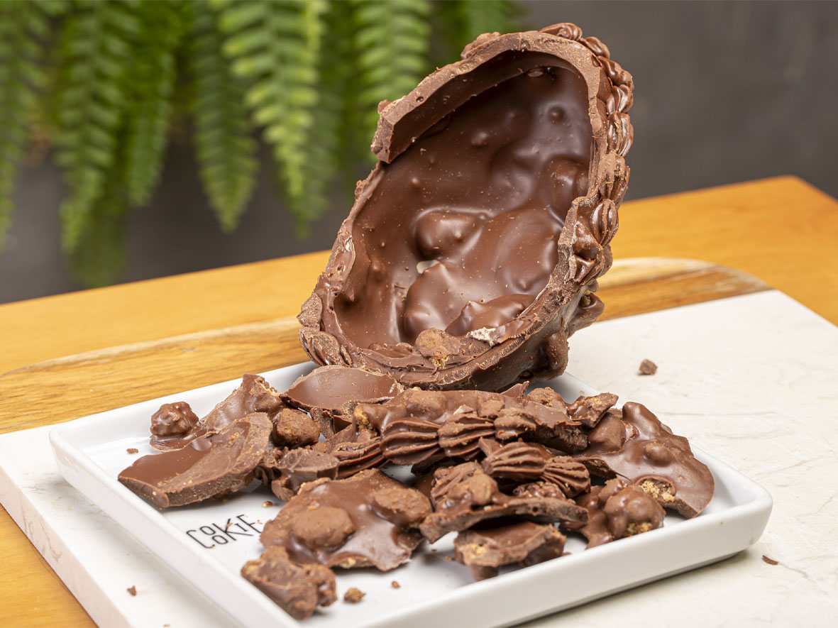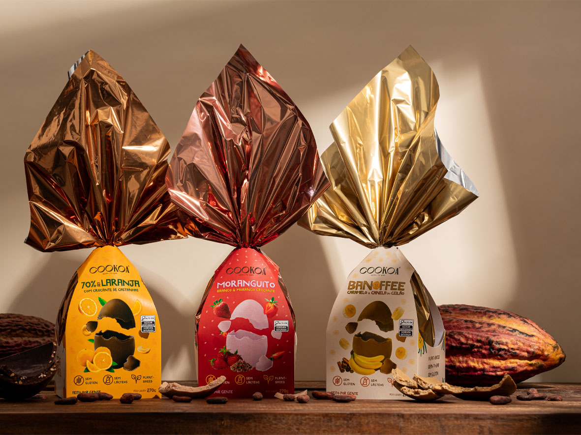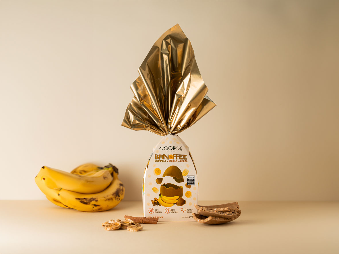 – Ovo de Páscoa Cookoa Banoffee (270g): chocolate caramelo com banana orgânica, castanhas tostadas e canela do ceilão. Dentro do doce, há banana polvilhada com canela do ceilão. Custa R$ 115,00 ou R$ 109,25 no Pix.