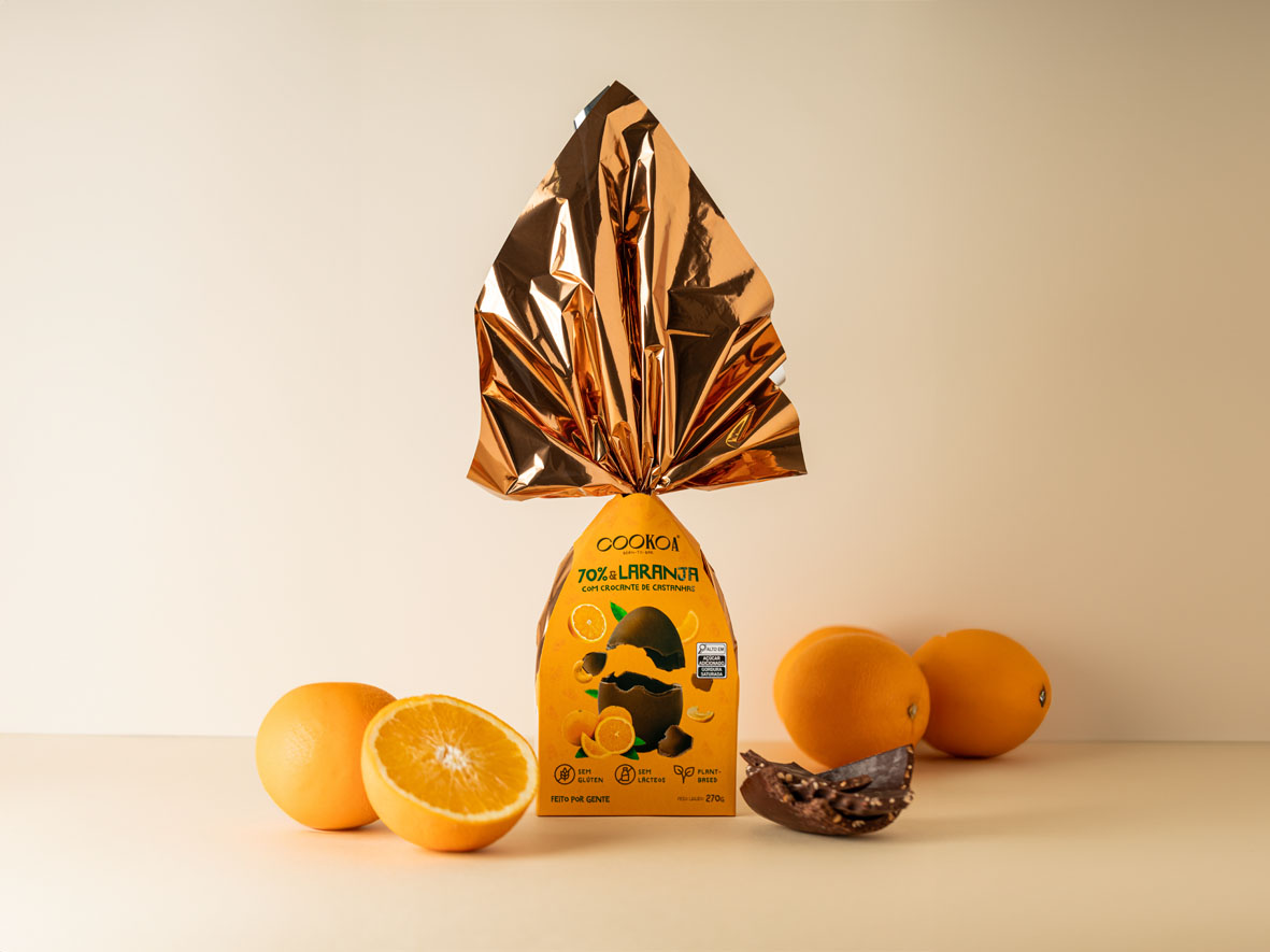 – 2. Ovo de Páscoa Cookoa 70%, Laranja e Crocante de Castanhas (270g): chocolate intenso com laranja e crocante de castanhas. Tem chocolate 70%, nibs de cacau, açúcar de coco, manteiga de cacau, crocante de laranja, castanha de caju, açúcar de coco e casca de laranja. Acompanha crocante de castanha com laranja. Valores: R$ 115,00 ou R$ 109,25 no Pix.