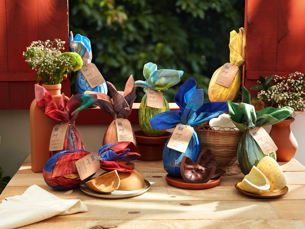 – Dengo de Corte Gianduia (450g | R$ 169,90): chocolate 65% cacau e recheado com três camadas de gianduia de castanha-de-caju – chocolate 50% cacau, 36% cacau e branco.