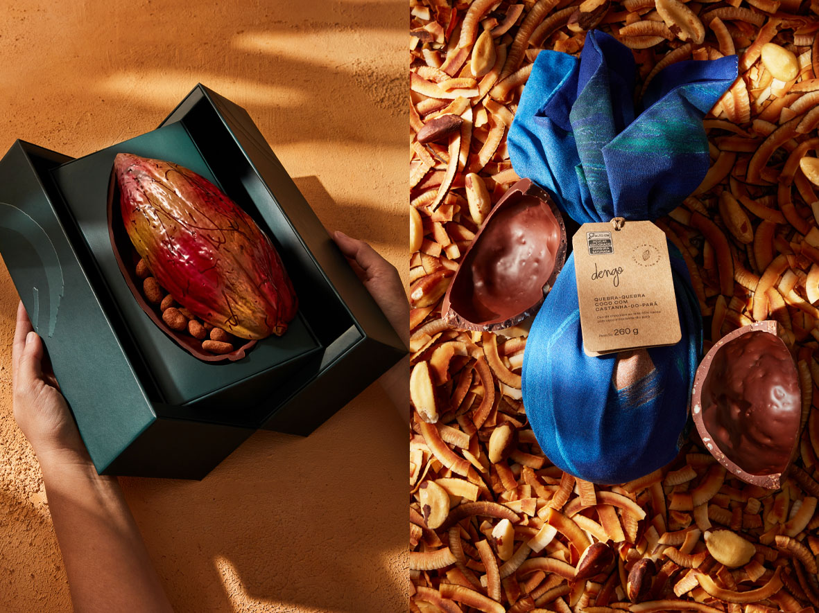 – Ovo Quebra-Quebra de Cupuaçu e Castanha de Caju (260g | R$ 129,90): cupuaçu com castanha-de-caju e chocolate 65% cacau.
