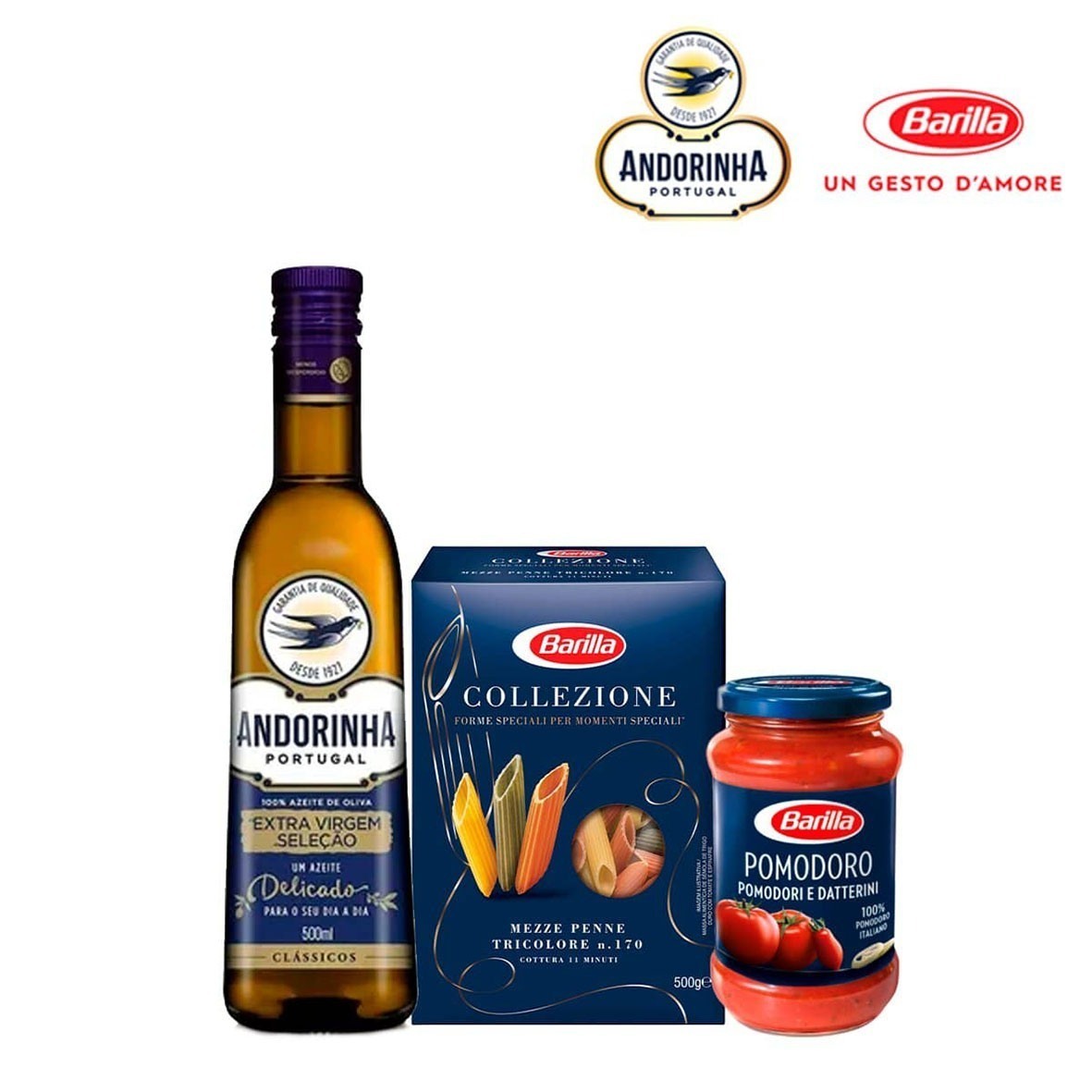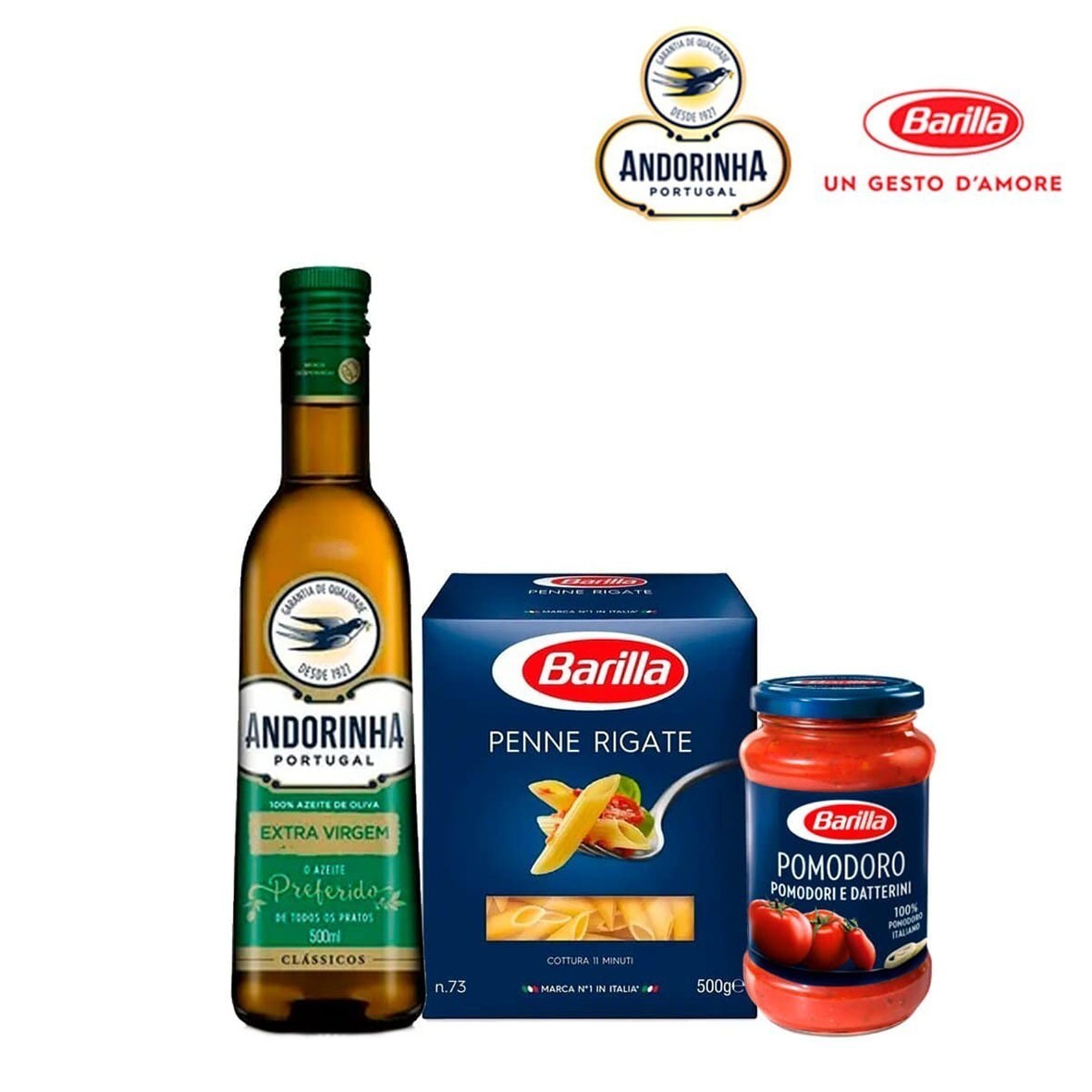 – Combo Penne Rigate Linha Clássicos + 1 Azeite Extra Virgem 500ml + 1 Molho Pomodoro (R$ 59,08).