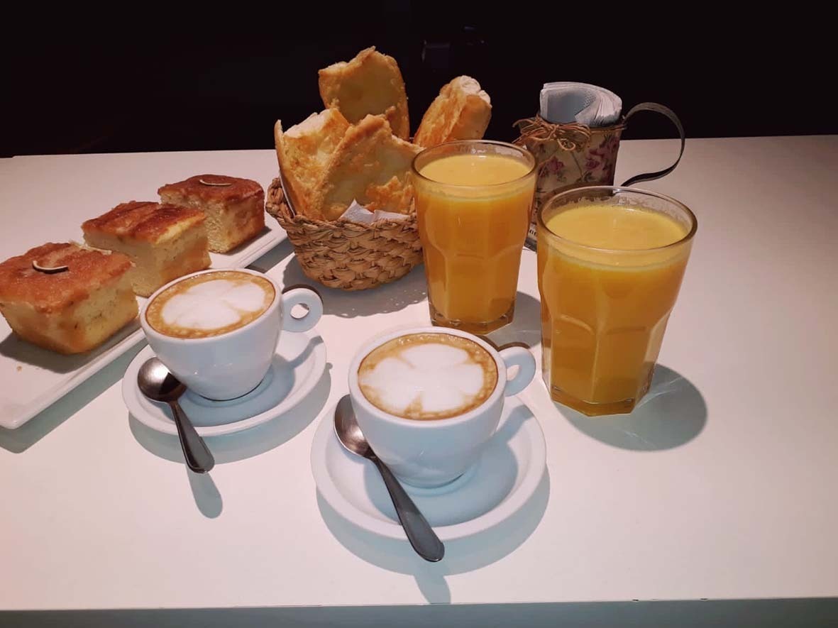 – Café Dellas: café compartilhado (dois cafés com leite, dois sucos de laranja, dois pães na chapa e um bolo inglês – sabores variados) – R$ 61,00.