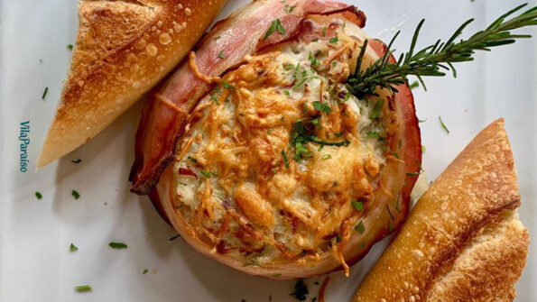 A primeira é a Cebola Imperial. Ela pode ser servida como aperitivo ou prato principal e a dica é acompanhá-la de vinho ou cerveja. Já a segunda receita é uma proteína. O Filé à la Reine é tradicional na família do chef e o ideal é servi-lo com arroz branco ou à grega.