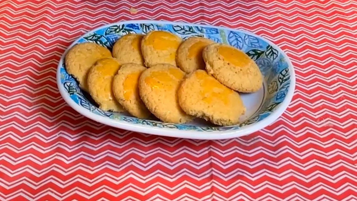 Faça bolinhas, achate delicadamente e acomode numa assadeira untada com manteiga. Pincele com gema de ovo e asse em forno pré-aquecido a 180 graus por 30/35 minutos. Quando estiver douradinha, está pronta!