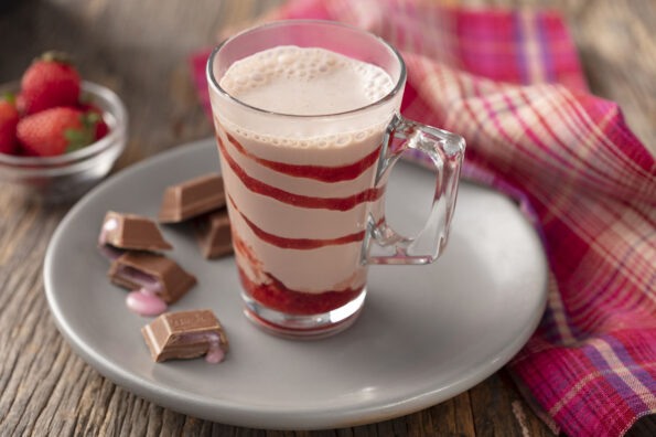 Em um copo, distribua a geleia de morango nas laterais. Reserve. Leve o Leite NINHO e o Achocolatado em Pó SENSAÇÃO ao fogo baixo até levantar fervura. Coloque a bebida no copo reservado e sirva.