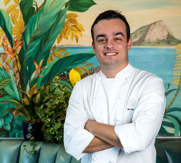 A noite fica por conta do chef João Melo, do próprio restaurante, que desenvolveu um menu especial para o jantar que será servido no hotel mais icônico do Rio de Janeiro. Conheça os pratos: