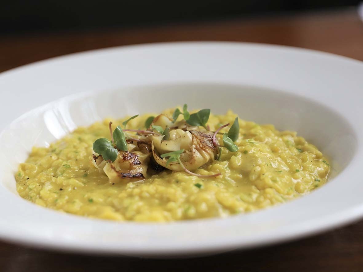 – Risoto de Alcachofra (R$ 67,00) com dashi vegetariano e toque de açafrão.